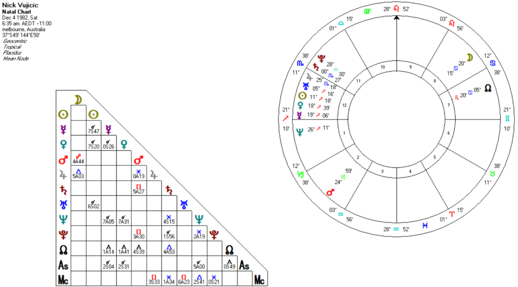 このホロスコープでは、東半球の偏り、特に射手座と12ハウスが強調されています。